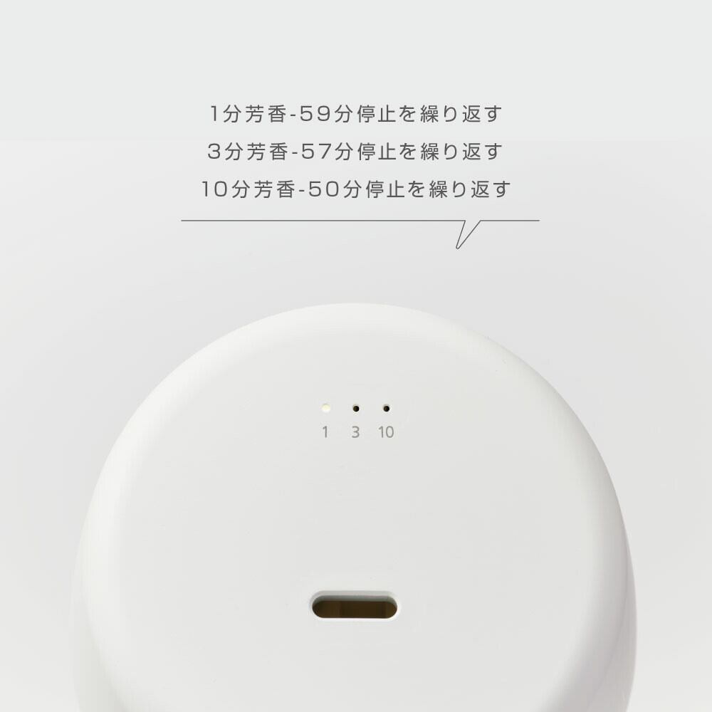 運 転モード:1時間に1度芳香(1・3・10分から選択) 1:1時間に1分運転を繰り返す(1分ON→59分OFF→1分ON→) 3:1時間に3分運転を繰り返す(3分ON→57分OFF→3分ON→) 10:1時間に10分運転を繰り返す(10分ON→50分OFF→10分ON→) ※30日後自動電源OFF機能有効芳香空間:〜約16畳使用オイル :エッセンシャルオイル(精油)のみ照 明:芳香時に点灯(ゆらぎ/点灯/消灯) スイッチ長押しでモード切替(ゆらぎ→点灯→消灯→ゆらぎ) ※メモリ機能付で前回の設定を記憶します保証期間 :1年間別売り品 :オイルパッドホルダーセット/取替用オイルパッド