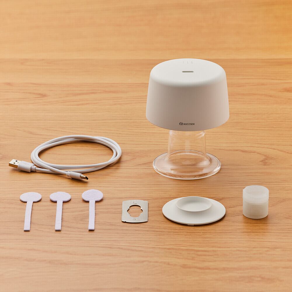 ●AROMAFUN hour×1台(ホワイト) ●オイルパッド×3枚(1枚は本体に装着済み)●ドロッパーオープナー(1個) ●USBケーブルTYPE-C-A(1本)※アロマオイルは付属しておりません。